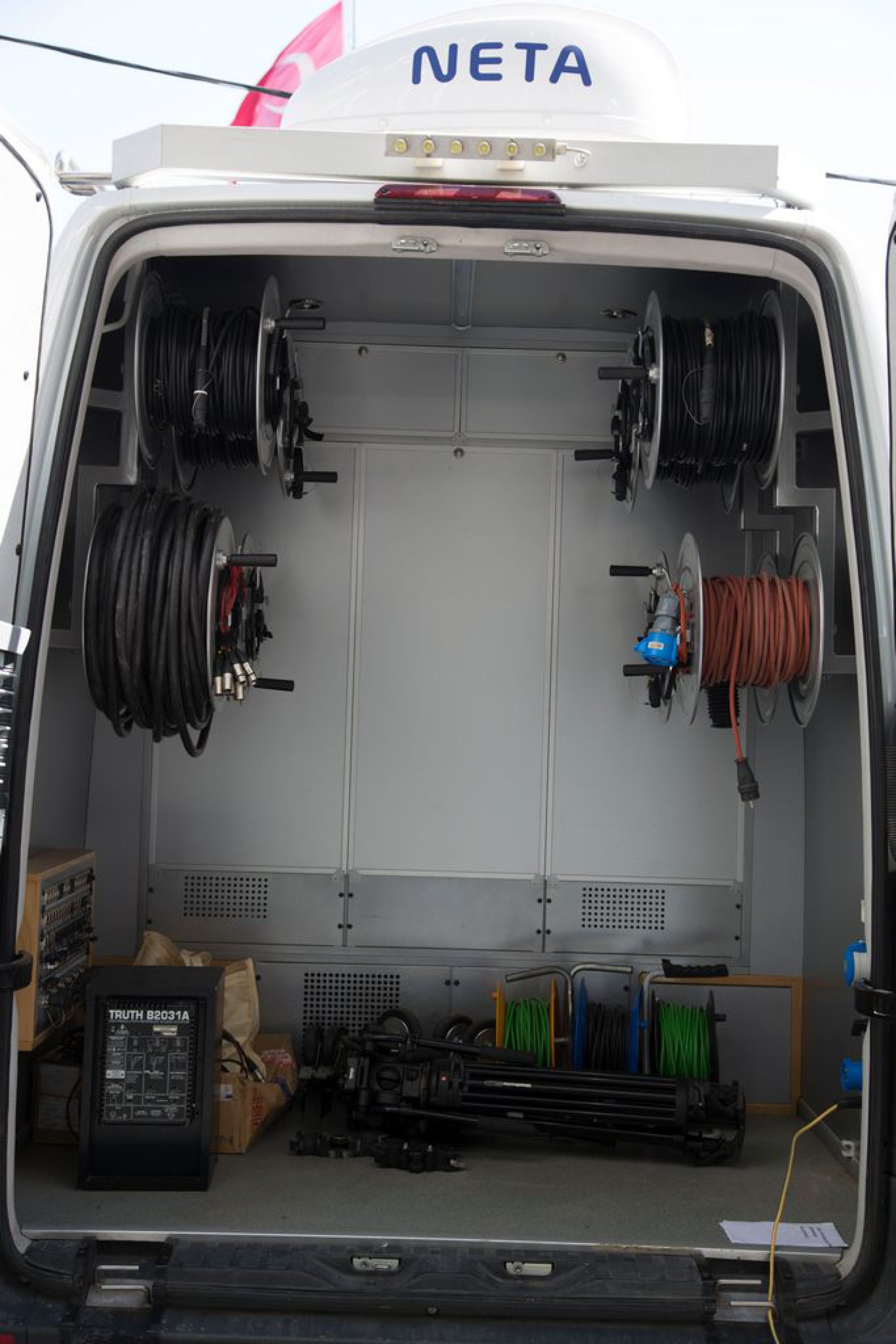 Araç seçimi yapılırken modelinin ekstra uzun ve yüksek olanı tercih edilmiş olup, kullanım alanının daha ferah ve işlevsel olması için yan kapı modifikasyonu yaptırılmıştır. Teknik yönetmen, resim seçici, yönetmen ve ses operatörü rahatlıkla oturup, uzun süreli yayınlar yapabilmektedir.